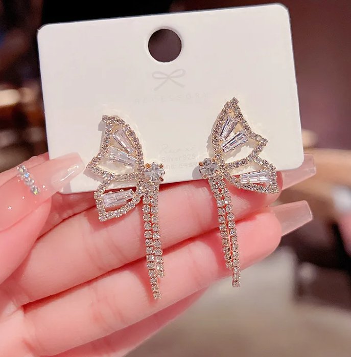 Introducing Butterfly Crystal Drops, the perfect addition to your jewelry collection. Crafted with premium quality American diamonds in a trendy Korean fashion, these earrings are ready to elevate your look for any party or festival. Make a statement with these stunning crystal drop earrings.