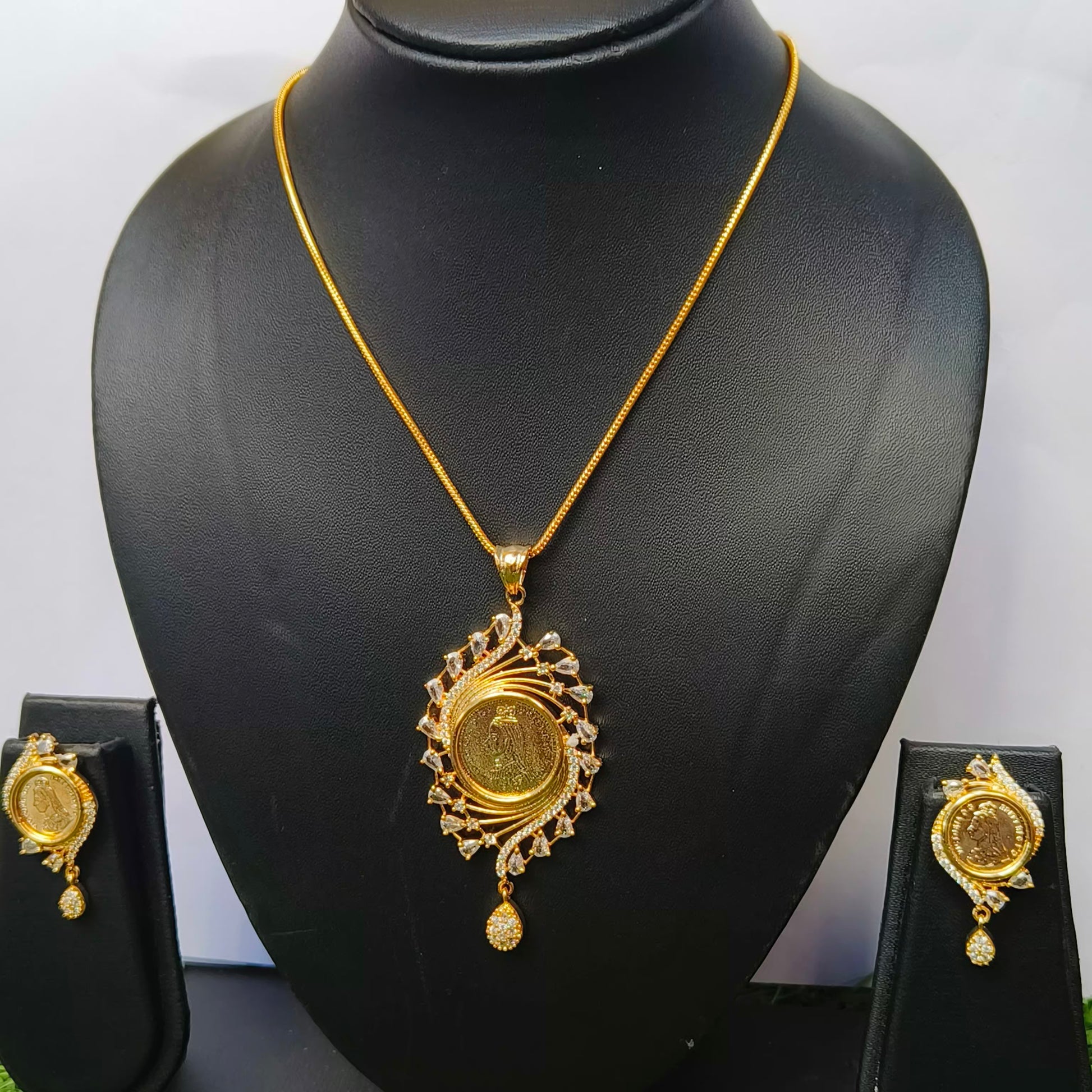 Petal Ginni pendant set boasts a unique petal design, adding a touch of elegance to any outfit. With expert craftsmanship and intricate detailing, this pendant set is a must-have for any fashion-forward individual. Made with high-quality materials, it is both durable and fashionable, making it the perfect addition to your jewelry collection.