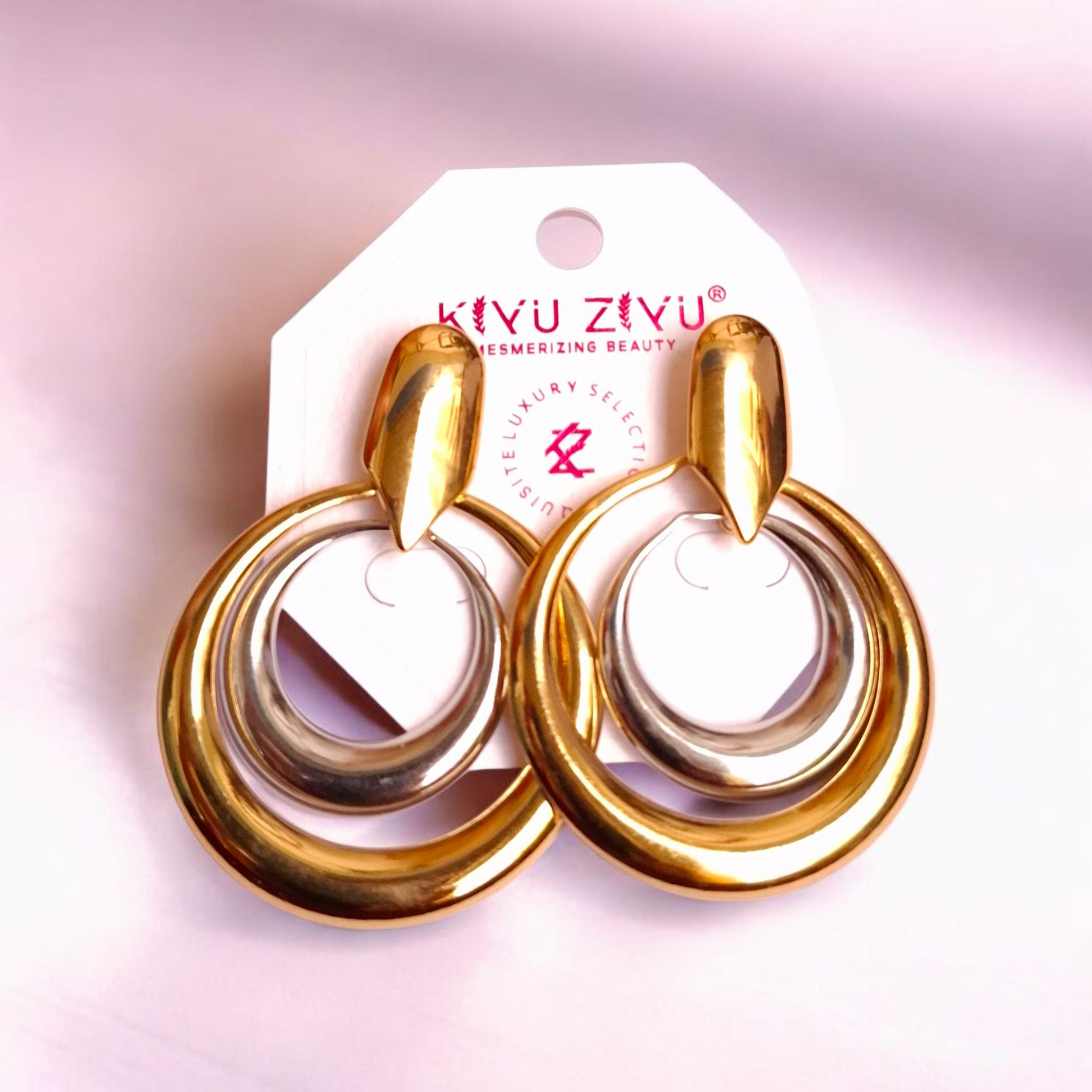 Elevate your accessory game with these stunning layered hoops that seamlessly transition from casual gatherings to special occasions. Crafted with anti-tarnish properties, these golden beauties maintain their lustrous finish through countless wears. The sophisticated layered design adds dimension and movement, catching light beautifully whether you're dancing at a party, enjoying a romantic dinner, or simply stepping out in style. Versatile enough for everyday elegance yet striking enough to be your go-to statement piece for any celebration.