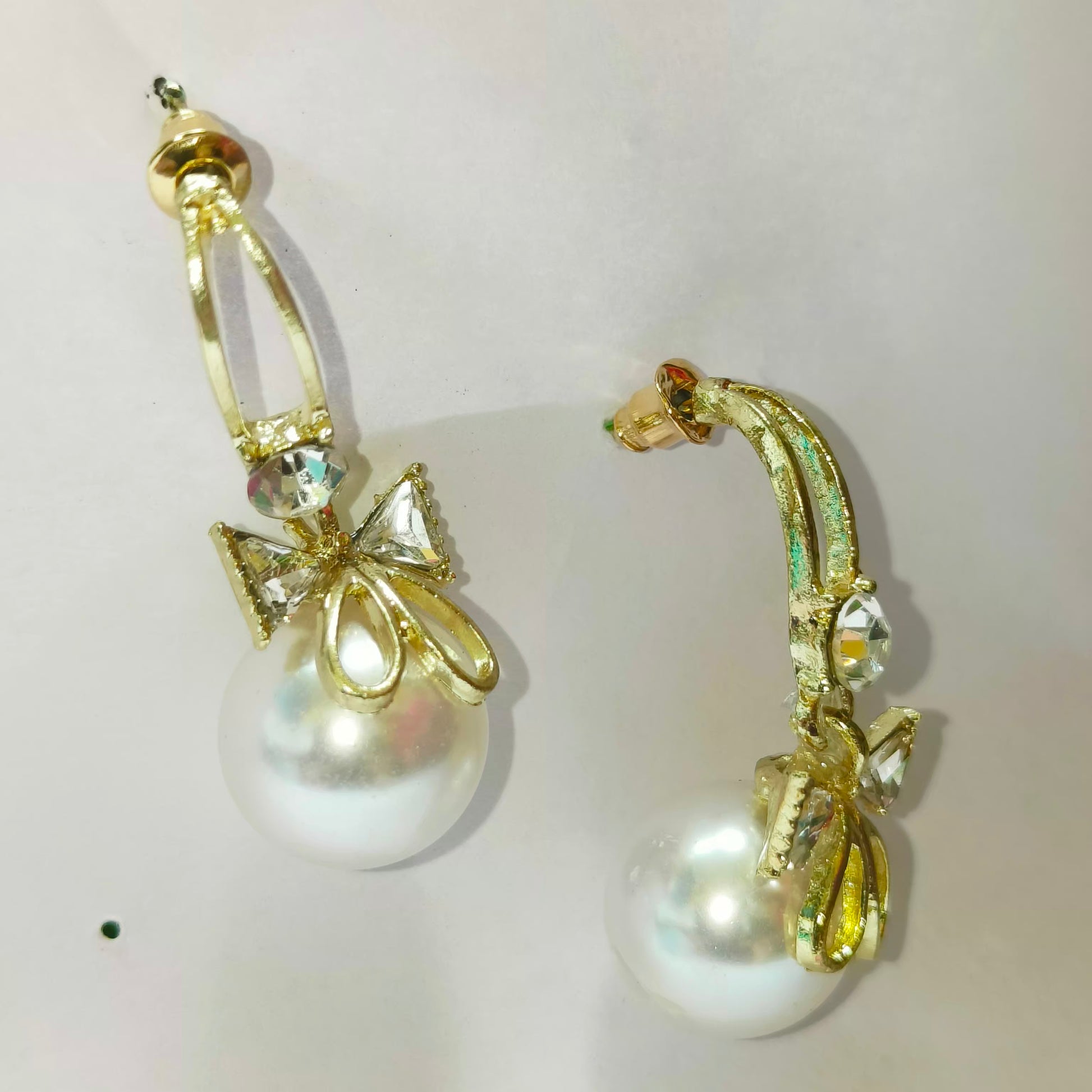 Add a touch of elegance to any outfit with Pearl Bow drops. These dangling pearl bow tie earrings are a must-have for any fashionista. The timeless design will never go out of style, making them a beauty that will last forever. Elevate your style with Pearl Bow drops.